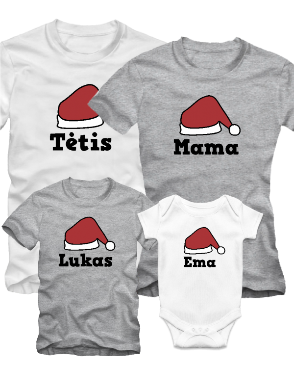Kalėdiniai marškinėliai ir bodžiukas šeimai Kalėdinė kepurė