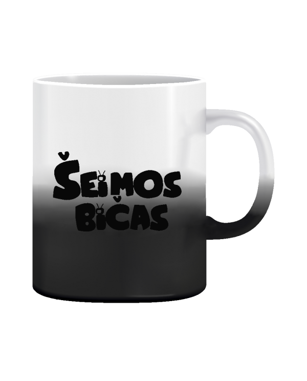 Magiškas puodelis: cilindrinis, keramikinis. Juodos spalvos puodelis įpylus karšto vandens keičia spalvą, tampa baltas, išryškėja puodelio dizainas. Talpa: 300ml